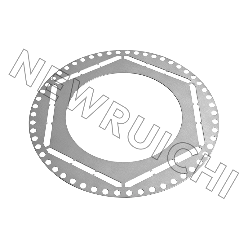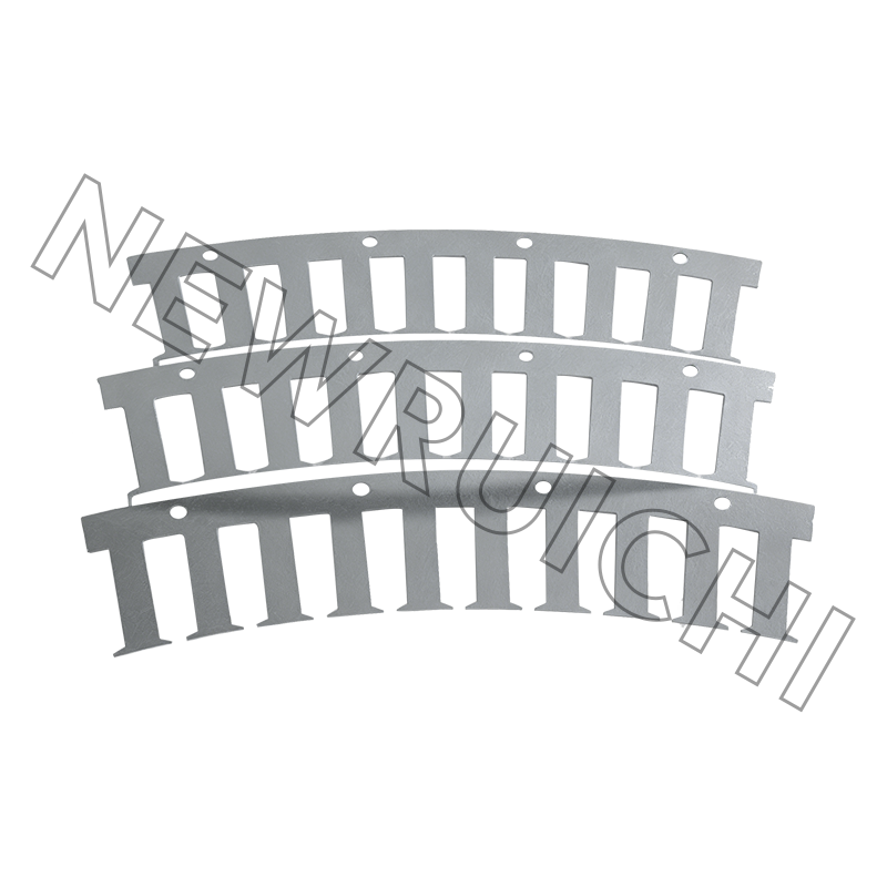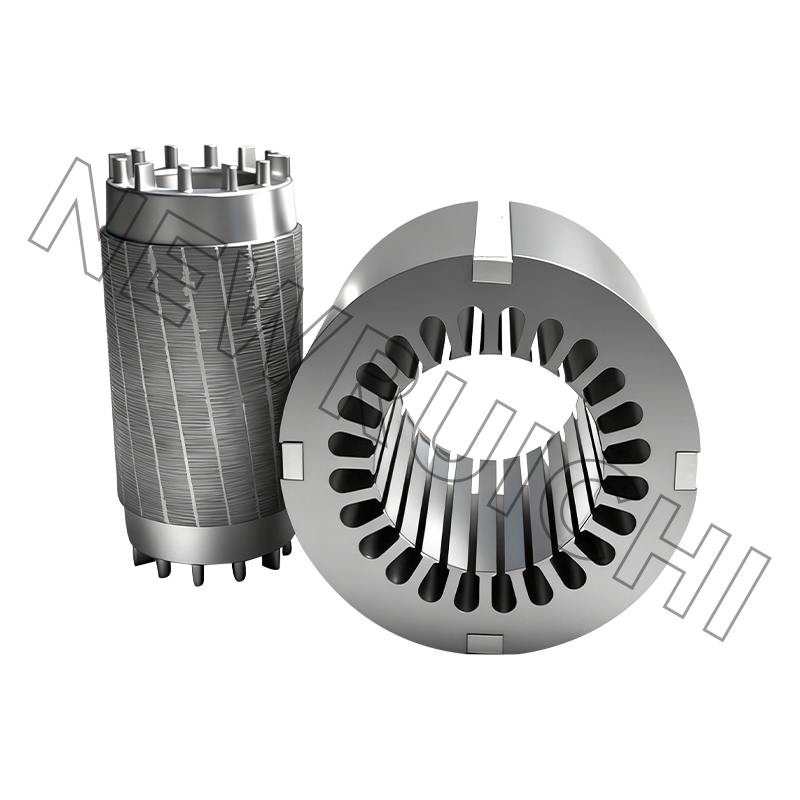 Déantar stator mótair AC agus laminations rotor a mhonarú ag baint úsáide as cruach sileacain neamh-dhírithe ardchaighdeáin in éineacht le teicneolaíocht stampála cruinneas. Déantar gach lamination a phróiseáil le rialú docht ar aonfhoirmeacht tiús, airíonna maighnéadacha, agus cruinneas tríthoiseach, ag cinntiú feidhmíocht leictreamaighnéadach cobhsaí le linn oibriú mótair. Déantar na huirlisí stampála agus bás a bharrfheabhsú chun burrs, dífhoirmiú agus tiúchan strus a íoslaghdú, ag cabhrú le comhsheasmhacht cruachta a fheabhsú agus ceanglais phróiseála breise a laghdú sna céimeanna déantúsaíochta ina dhiaidh sin.
